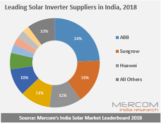 具體來說,2018年,ABB在印度太陽能逆變器市場占據(jù)24%的市場份額,陽光電源占16%,華為占12%。截至2018年底,印度市場共有35家活躍的逆變器供應商。