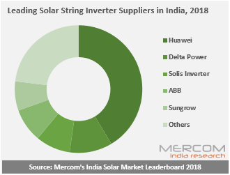 2018年,印度市場最大的串式逆變器供應商是華為,累計供應量已經(jīng)超過3吉瓦。排在前五位的串式逆變器供應商還包括臺達電源、錦浪科技、ABB和陽光電源,聯(lián)合市場份額達到77%。