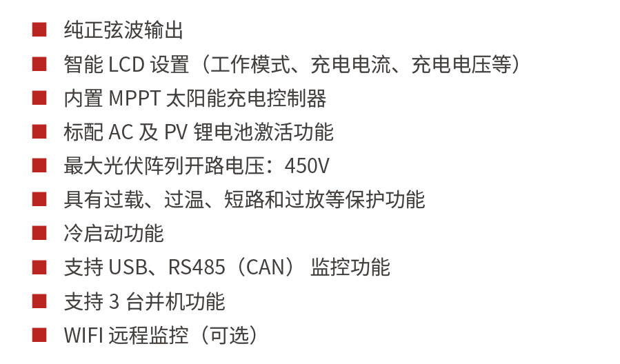 PH1800 PRO 是一款高頻離并網(wǎng)一體的光伏逆變器,內(nèi)部集成 MPPT 控制器、AC 充電器、逆變器等功能模塊于一體,此系列產(chǎn)品無需電池即可運(yùn)行。最大光伏陣列開路電壓可達(dá) 450V,最大功率點(diǎn)電壓為 150~430V,可幫助用戶充分利用太陽(yáng)能。