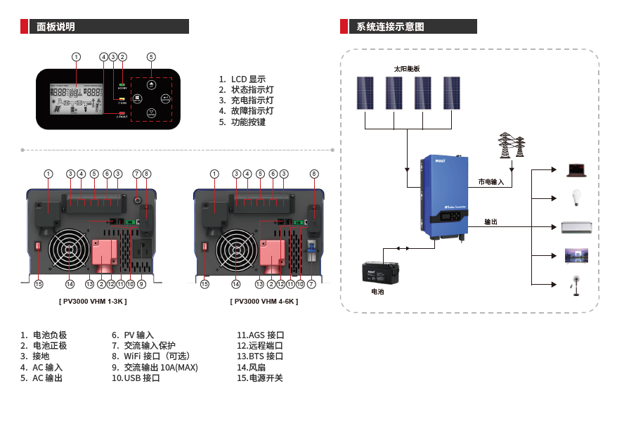 PV3000 LVHM 系列是一款工頻正弦波離網(wǎng)逆變控制一體機(jī),采用環(huán)形變壓器,大大減小了空載損耗、內(nèi)置 80A的 MPPT 充電控制器,多種設(shè)置模式,使用靈活,輸出電壓 110V, 適合部分進(jìn)口設(shè)備使用。廣泛應(yīng)用于戶用型光伏發(fā)電、工廠設(shè)備,該系列產(chǎn)品具有高穩(wěn)定性、高可靠性、高實(shí)用性。