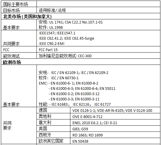 太陽能光伏并網(wǎng)逆變器主要使用國家的認(rèn)證包括: