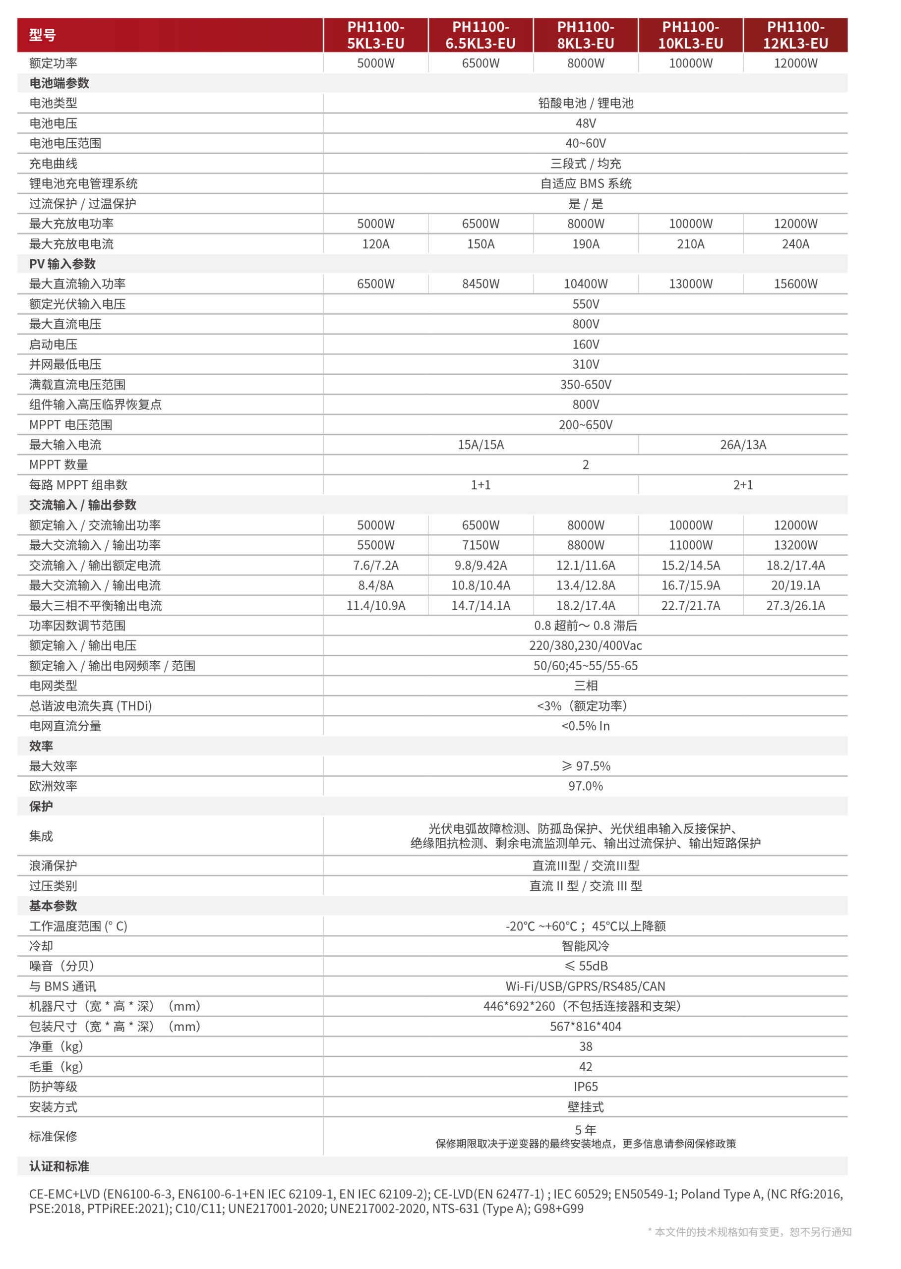 PH1100 EU 系列 是一款三相離并網(wǎng)雙向儲能逆變器,設(shè)計(jì)緊湊,功率密度高。直流輸入功率與交流輸出功率支持 1.3 倍超配,在三相電不穩(wěn)定的情況下也可以穩(wěn)定輸出,同時(shí)配備 2 個(gè) CAN 接口,用于鋰電池 BMS 和系統(tǒng)并聯(lián);1 個(gè) RS232通訊接口,用于遠(yuǎn)程控制;1 個(gè) DRM 接口,使系統(tǒng)更加智能和靈活。