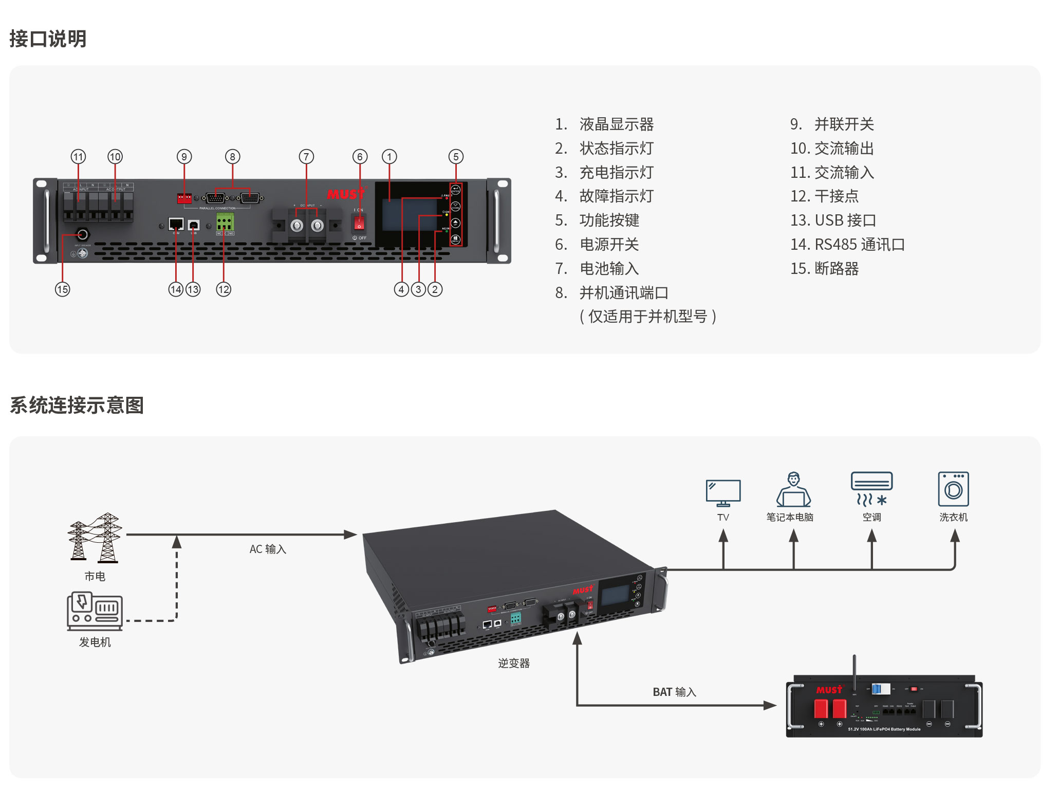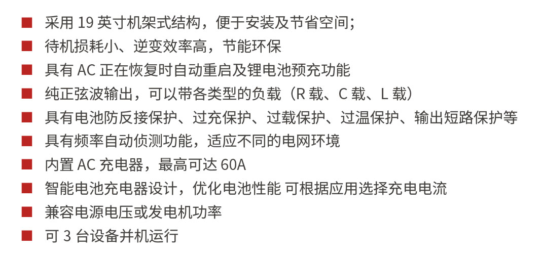 工作方式: 高頻正弦波機架式逆變器