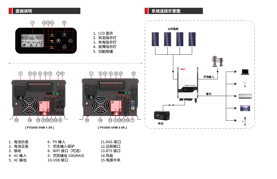 PV3000 VHM 系列是一款工頻正弦波離網(wǎng)逆變控制一體機,采用環(huán)形變壓器,大大減小了空載損耗、內(nèi)置80A的MPPT 充電控制器,多種設(shè)置模式,使用靈活,廣泛應(yīng)用于戶用型光伏發(fā)電、通訊基站、監(jiān)控系統(tǒng)、牧區(qū)、海島等,該系列產(chǎn)品具有高穩(wěn)定性、高可靠性、高實用性。